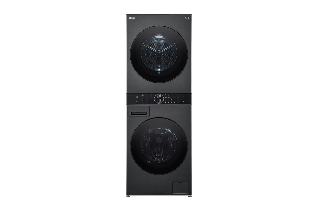 LG WashTower W4W8BVKKZHM is a 24-inch, black steel, single-unit washer and dryer combo controlled by...