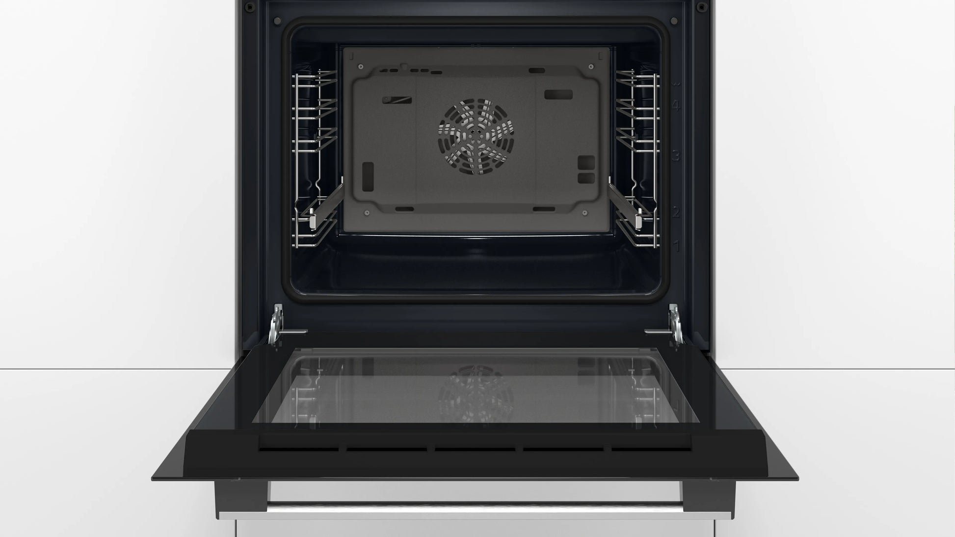 The Bosch HBJ538ES0M is a Serie | 4 built-in oven with a 66-liter capacity.