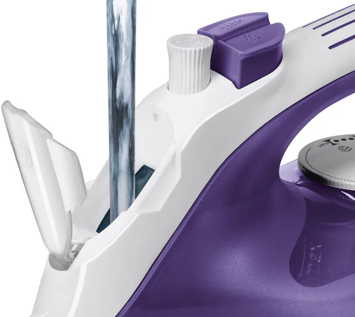 It ensures smooth gliding across fabrics and excellent steam distribution for efficient wrinkle removal. The iron delivers a high steam shot of up to 95 g/min to tackle stubborn creases, combined with a continuous steam output of approximately 30 g/min for regular use.