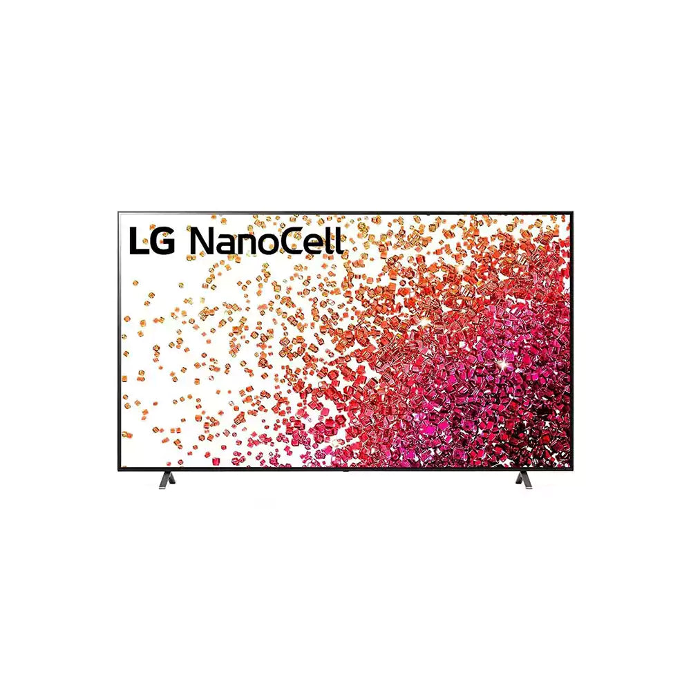 Every color crystal clear: LG NanoCell TV utilizes nanoparticles, our own distinctive Nano technology, to filter and refine color, removing impurities from RGB wavelengths. Wonder from every angle: NanoCell TV's absolute color ensures that colors are displayed accurately for a realistic picture even when viewed from wide angles. Nano Cinema: Pure Colors and a host of the latest display technologies bring the movie theatre into your home with LG NanoCell TV. Entertainment: Access the Netflix, Apple TV app. Choose From the latest movies, TV shows, documentaries, and live sports, and find them all in one place. Dolby Vision IQ & Dolby Atmos: Dolby Vision IQ intelligently adjusts picture settings based on content genre and ambient surroundings, while Dolby Atmos delivers multi-dimensional surround sound — a powerful combination that produces breathtakingly cinematic results. FILMMAKER MODE™: FILMMAKER MODE™ turns off motion smoothing while preserving the original aspect ratios, colors, and frame rates. HDR 10 Pro: LG's own dynamic range technology, HDR 10 Pro, adjusts brightness to enhance color, reveal every tiny detail, and bring lifelike clarity to every image. ALLM: Get an edge on opponents. ALLM meet the latest HDMI 2.1 specifications to allow fast-moving content in higher resolution and smooth, synchronized graphics. Sports Alert: Sports Alert notifies you before, during, and after games. You'll never have to worry about missing the big plays from your favorite teams, even when you're watching other content. Bluetooth Surround Ready: Easily connect Bluetooth speakers for a true wireless surround sound experience. α7 Gen4 AI Processor 4K: At the core of LG NanoCell TV is the α7 Gen4 AI Processor 4K, a groundbreaking chip that uses machine learning algorithms to analyze and optimize content. AI Picture: Using a vast database of over one million visual data points, the deep-learning algorithm recognizes content, removes noise, and optimizes picture quality. AI Sound: By learning from more than 17 million audio data points, the processor identifies voices, effects, and frequencies so it can then optimize the sound by genre for a more immersive experience. AI ThinQ: Choose your favorite voice assistant and control your TV with your voice with an all-new home screen to provide more convenience and control. New Magic Remote: The redesigned Magic Remote has an ergonomic design that's easy to hold, and its point and scroll system allows for faster searching. Voice Command: LG ThinQ allows simple command and control of your Home IoT ecosystem with natural voice recognition. Display Resolution 4K NanoCell(3840*2160) Motion/Refresh Rate Refresh Rate 100Hz Main Processor (SoC) α7 Gen4 Processor 4K (LM21U) Operating System (OS) webOS Smart TV Face Enhancing + Body/Object (8K Only) AI Picture - Face Enhancing Dolby Vision IQ Yes / Yes / Yes / Yes(4K/2K) Dynamic Tone Mapping / Pro (+ AI HDR Tone Mapping) HDR Dynamic Tone Mapping Picture Mode Yes 9 modes (Vivid, Standard, Eco, Cinema, Sports, Game, Filmmaker, (ISF) Expert (Bright Room), (ISF) Expert (Dark Room)) Magic Remote Control Built-in Voice Assistance Google and Alexa Built-in Content Partners Netflix, Prime Video, Disney+, Apple TV, Hulu, CBS All Access, Peacock, YouTube TV, Spotify, iHeartRadio and more Batteries Yes (AA x 2EA) Speaker (Sound Output) 20W (10W per Channel) Audio Codec AC4, AC3 (Dolby Digital), EAC3, HE-AAC, AAC, MP2, MP3, PCM, WMA, apt-X TV Dimensions with Stand (WxHxD) 49.1" x 76.7" x 10.8" Digital TV Reception(Terrestrial,Cable,Satellite) Yes Power Supply (Voltage, Hz) AC 100~240V 50-60Hz Standby Power Consumption Under 0.5W USB Ports (v 2.0) 2 Wi-Fi® Standard Wi-Fi Certified 802.11ac Bluetooth® Support Version 5.0 HDMI Input (HDCP 2.2) 4 (1 rear, 3 side)